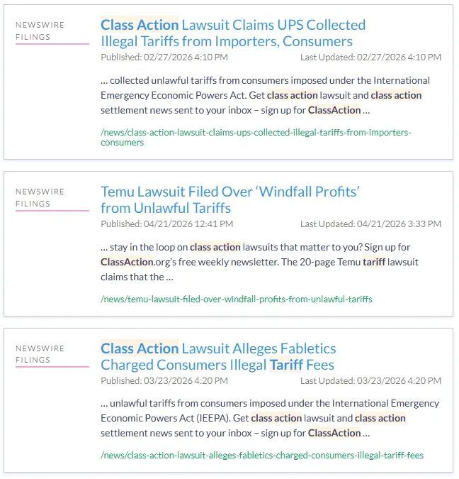 正是受到FexEx等公司的启发,自额外关税被判为“非法”后,美国各地不断有消费者发起集体诉讼,被告席上不乏索尼、三星和Temu等知名巨头公司。