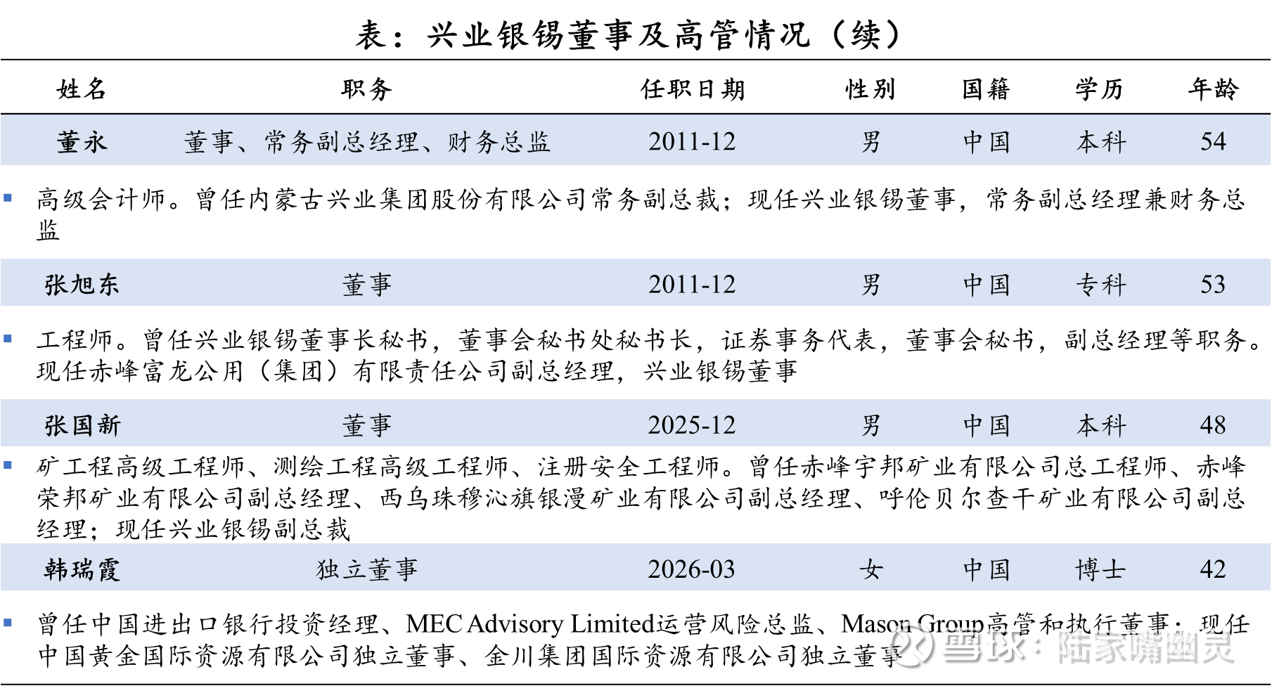 基本都是从11年上市那会就开始任职了;整体年龄偏大,都有集团履历,也会兼任下面矿业子公司的高管。