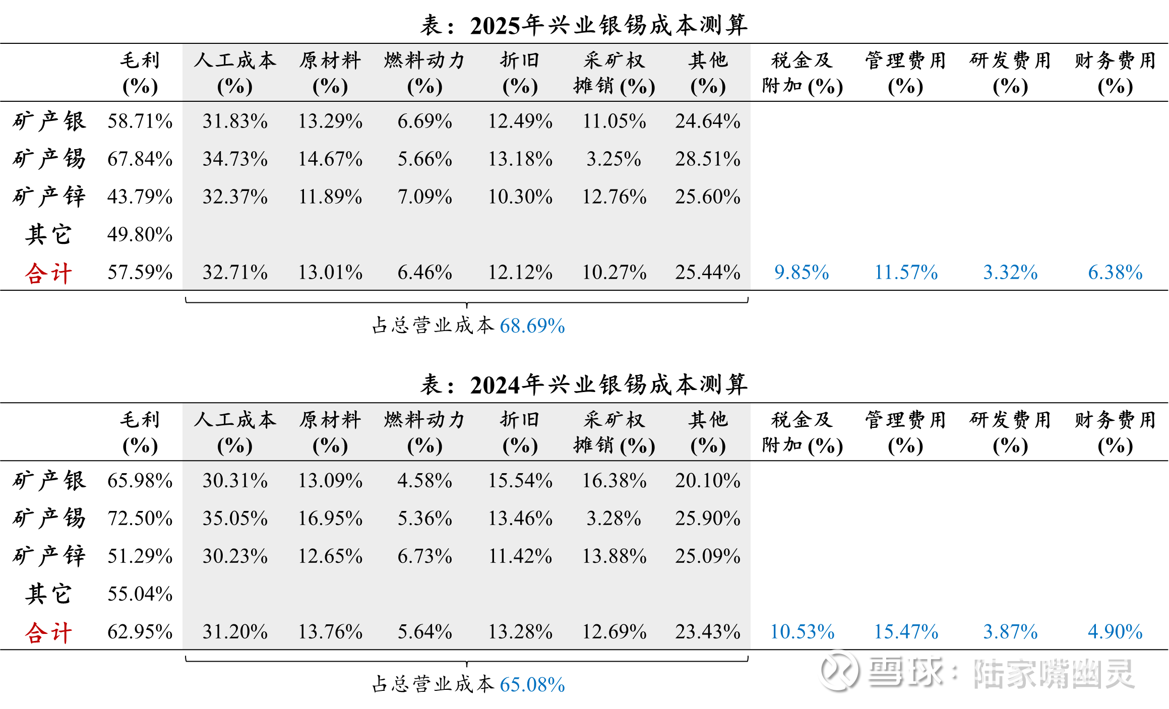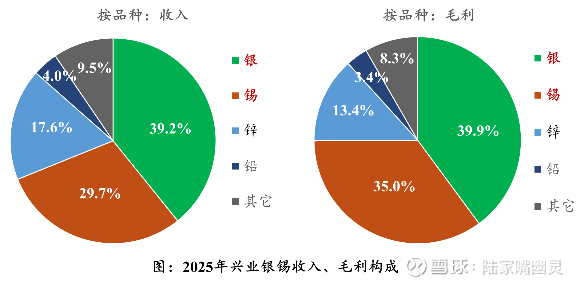 相较24年,25年银收入、毛利占比均大幅提升(24年为27.3%与28.6%);锡占比下降(24年为33.1%与38.2%)。