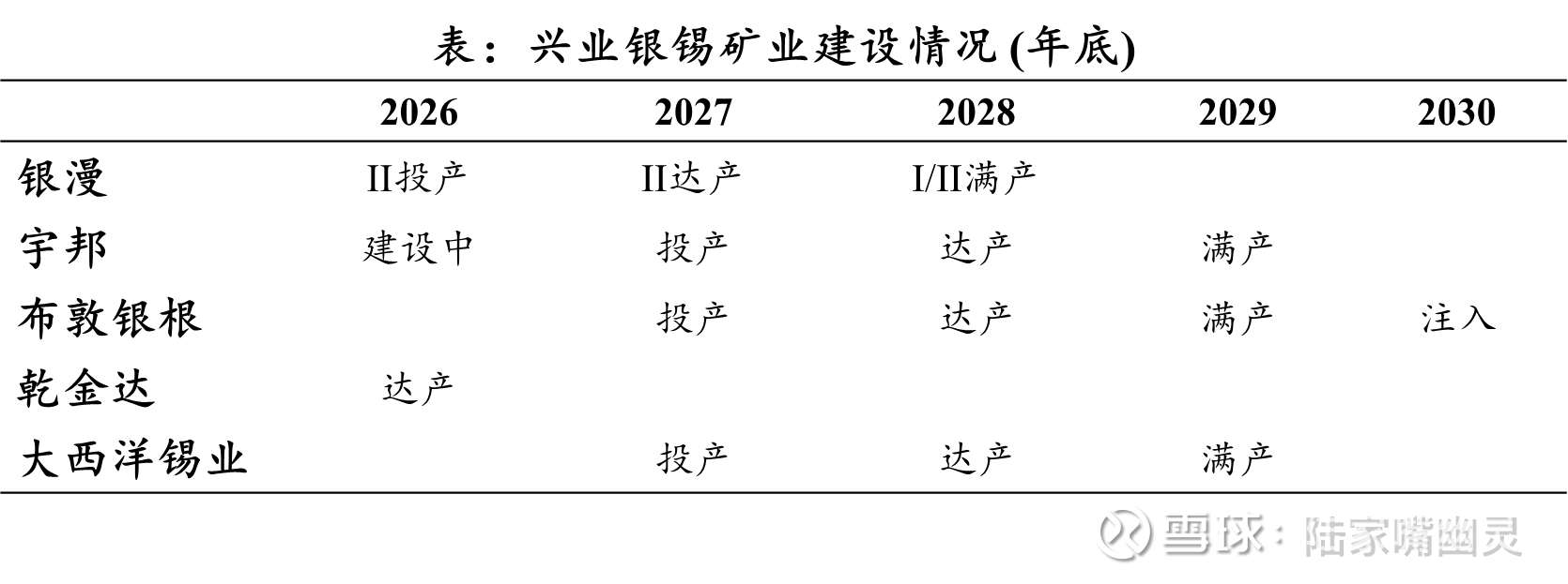 布敦银根:目前由兴业银锡托管,主矿种为银矿。设计生产规模67.5万吨/年。因为存在同业竞争问题,在投产且形成稳定利润一年后将注入