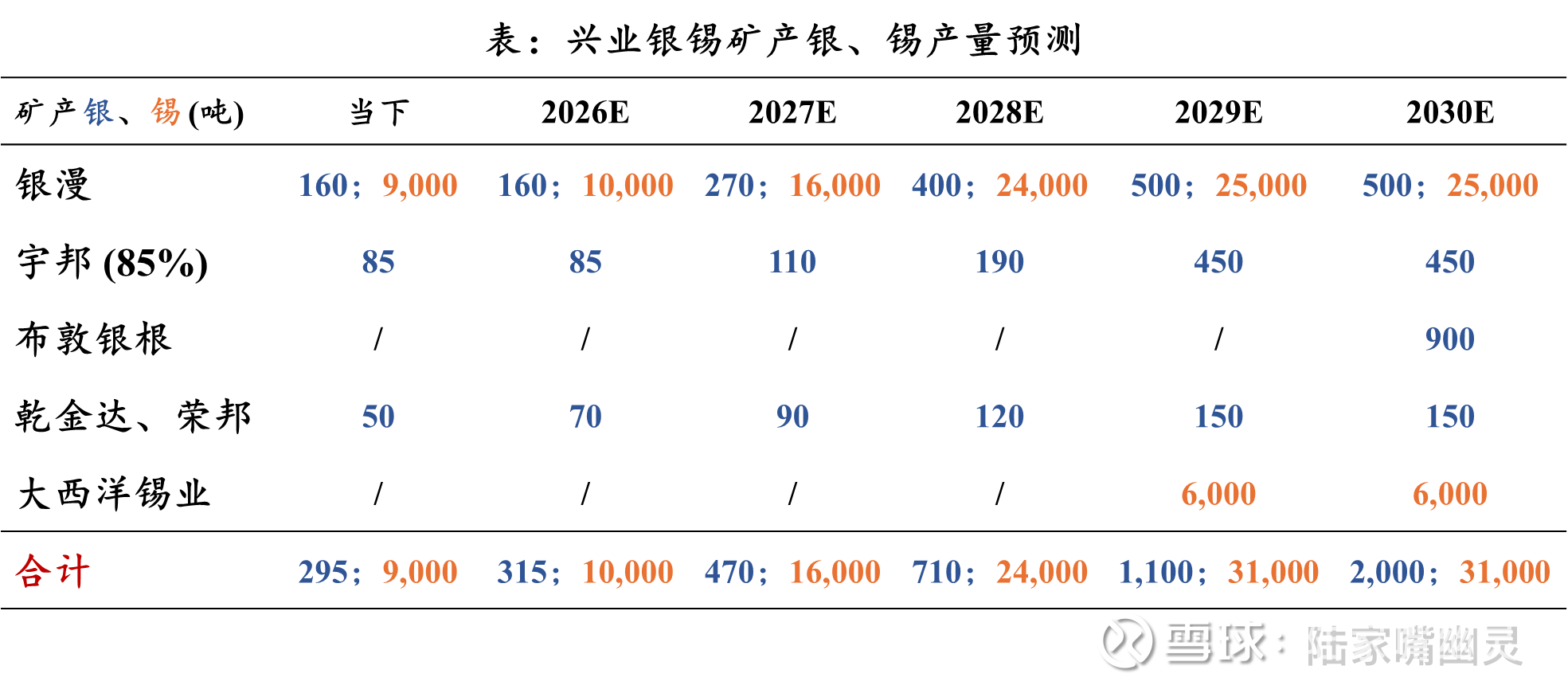 根据上述计算,兴业银锡远期产量分别为:银2000吨,锡31000吨。