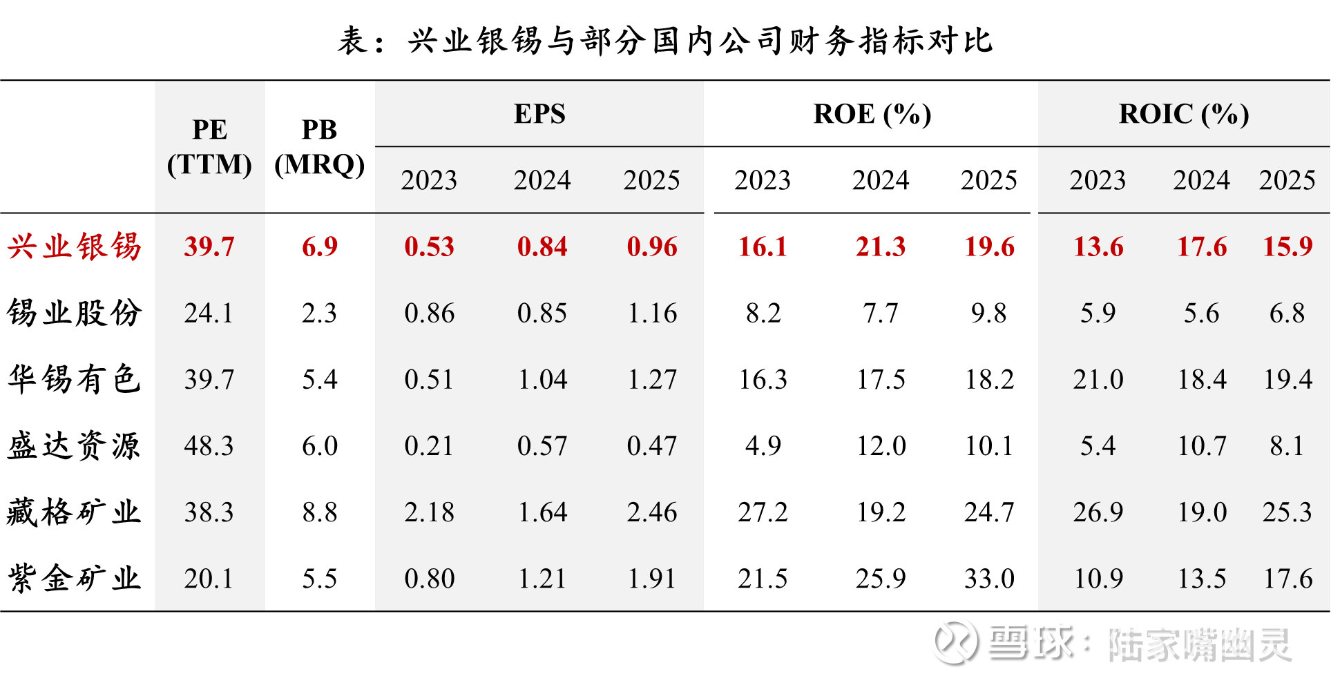 附上兴业银锡与部分公司的指标对比,前几家主要是做锡和银;顺便把紫金和藏格也一起放上了