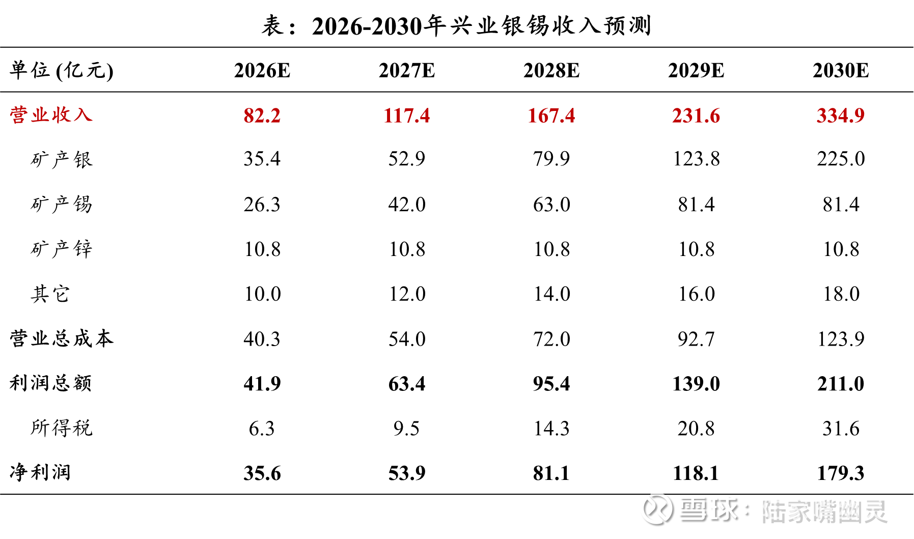 解释一下计算方法,例如30年银收入:2000吨产量 × 预测现货价15元/克 × 收入均价与现货价比例75% = 225亿元。