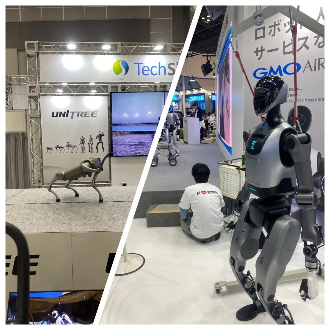 GMO引入了宇树的G1、众擎的PM01和优必选的Walker E。在GMO的展区展出的,实际上不是机器人,而是一个未来的商业模式:机器人派遣员工。不是缺劳动力吗?它就将机器人这种未来的“劳动力”先用起来、规模化起来。