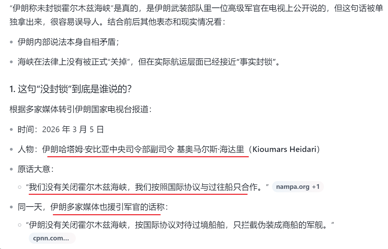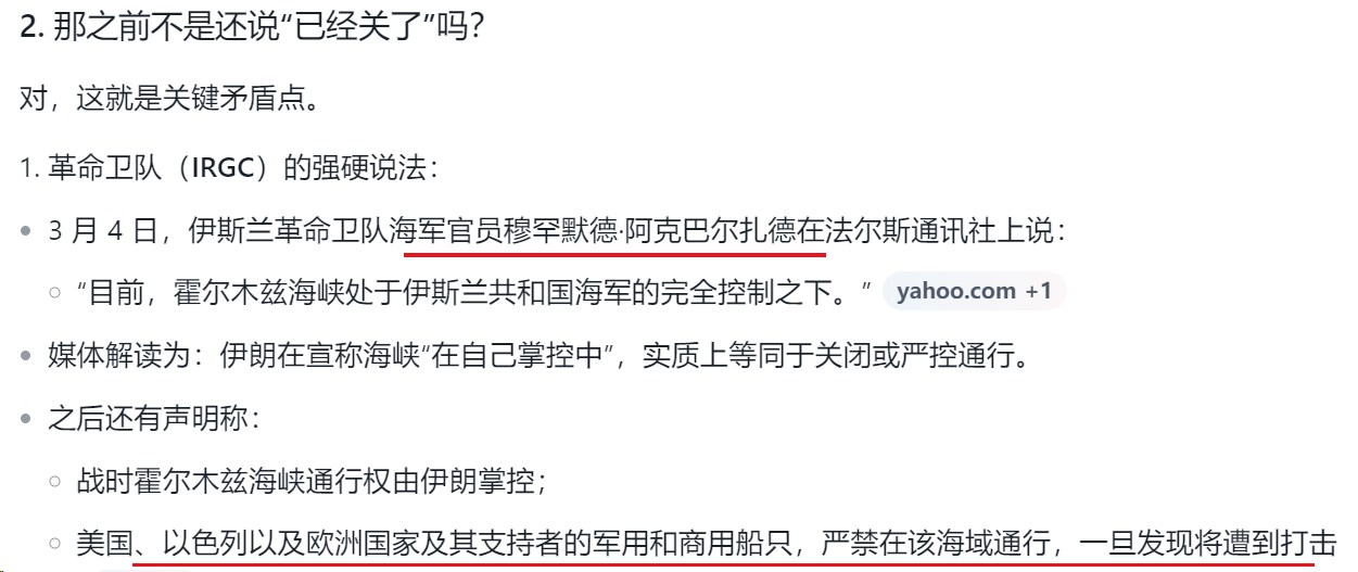 3) 伊朗称未封锁霍尔木兹海峡?