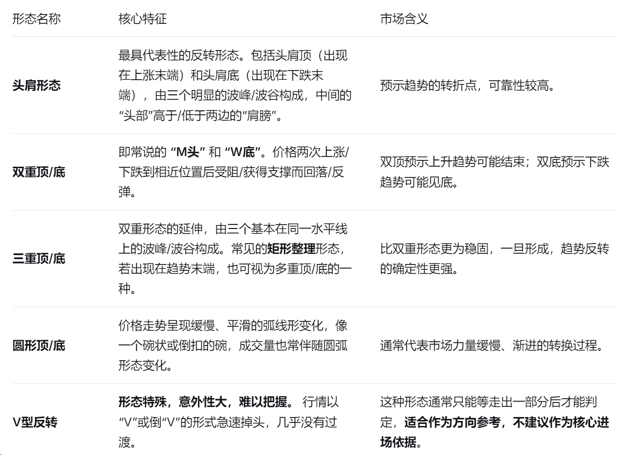 技术分析形态中,分为反转信号和持续信号,反转形态的出现,预示着当前的上升或下降趋势可能即将结束,行情将朝着相反的方向运行。这类形态是投资者“抄底”或“逃顶”的重要参考。