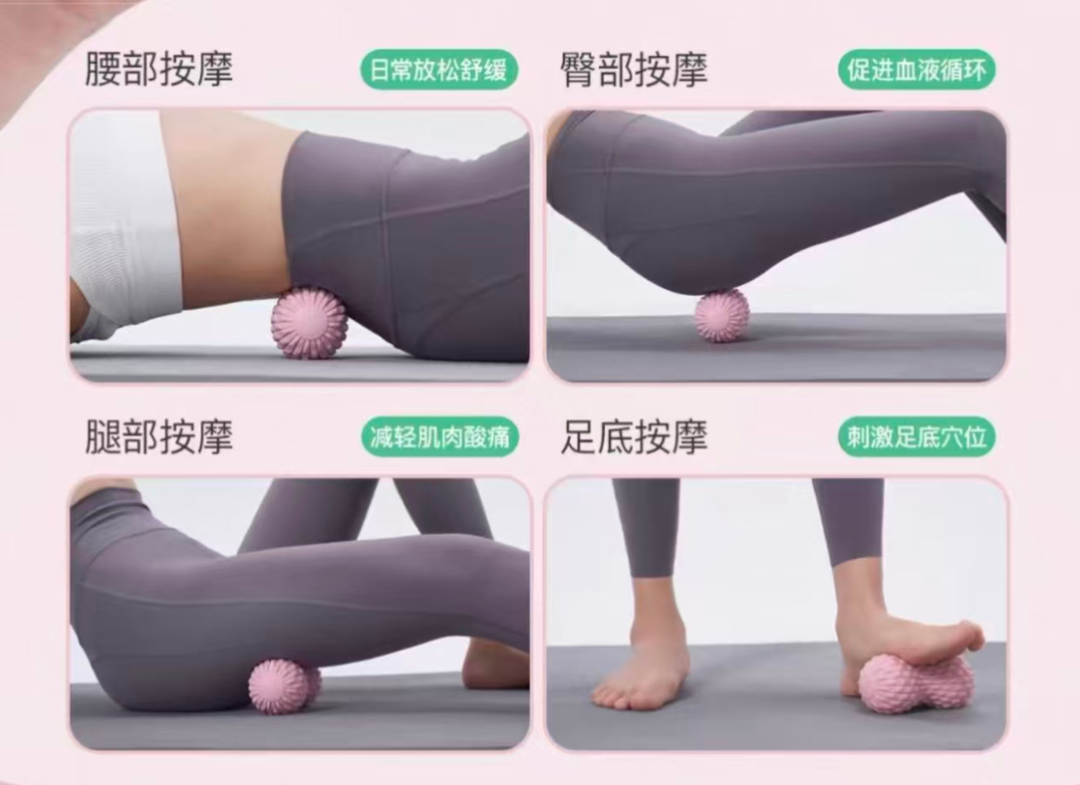 筋膜球虽然更小更便宜,却是泡沫轴的“精准加强版”。尤其是花生球,使它能完美避开脊柱,而精准作用于脊柱两侧紧张的竖脊肌、肩胛骨内侧缘、臀部梨状肌等深层小肌群和顽固痛点。运动完哪里卡着、酸着,随手拿起来压一压,就是你手边的专业“按摩师”。