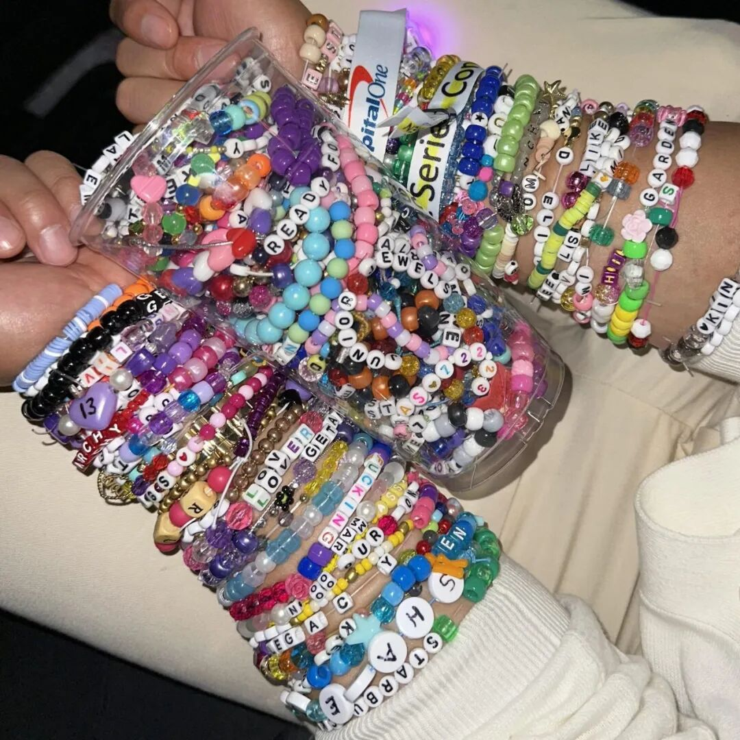 在Taylor Swift的Eras Tour现场,一串由塑料珠、字母与符号组成的友谊手链,被频繁地摘下、交换、重新戴回手腕。它们并不昂贵,也并非官方授权,却在短时间内成为全球巡演中最具辨识度的文化符号之一。