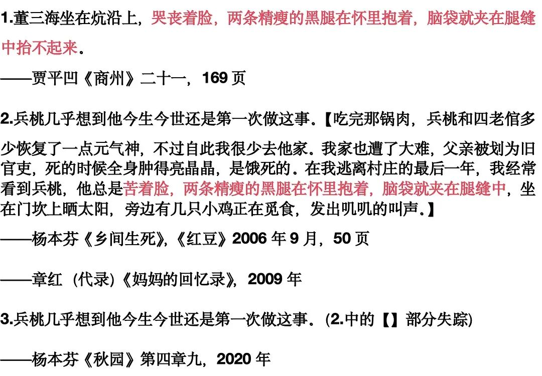 随着越来越多疑似抄袭的段落被曝光,人们渐渐发现,这一次并非零星几句——而是整段的挪移。