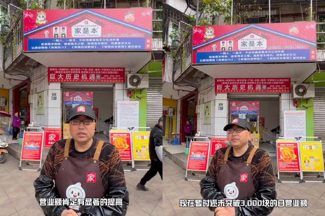 尽管老板解释不清“家是本”是什么文化,问及家中妻儿,老板也表示“不用管他们”;且因不会选品,每天营业额只有40-50元,月亏6000。但这位老板坚称家文化是“巨大历史机遇”,并认为自己应该得到央视采访。