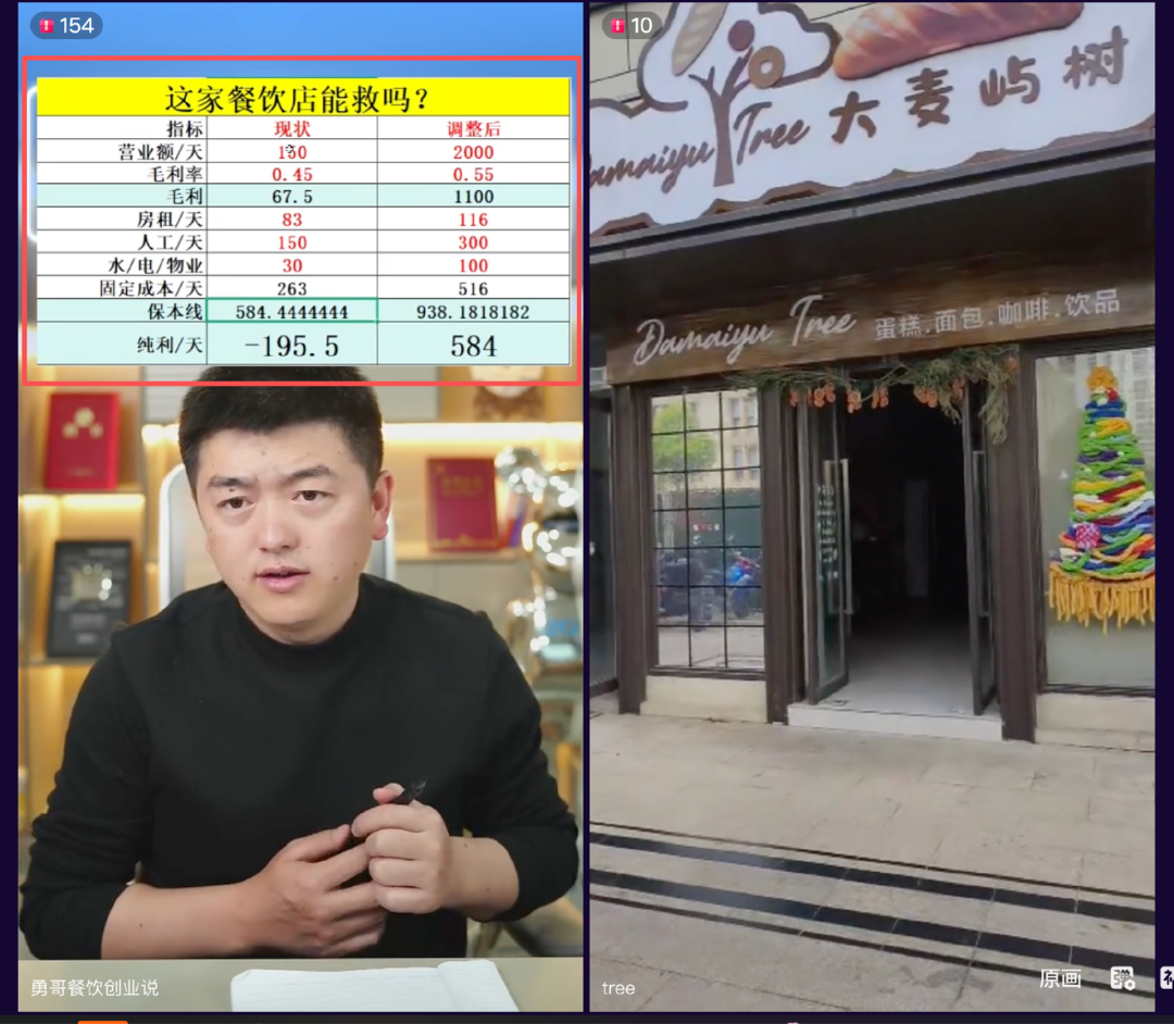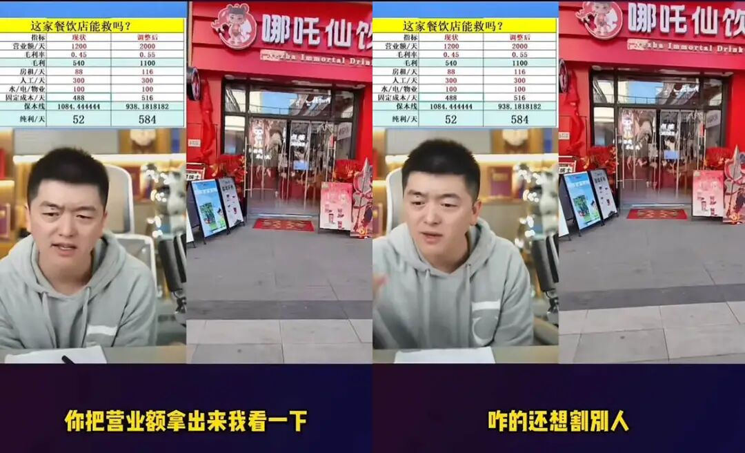 他的核心竞争力,还在于那张永远悬挂于直播间正上方,标题为《这家餐饮店能救吗》的数字表格。