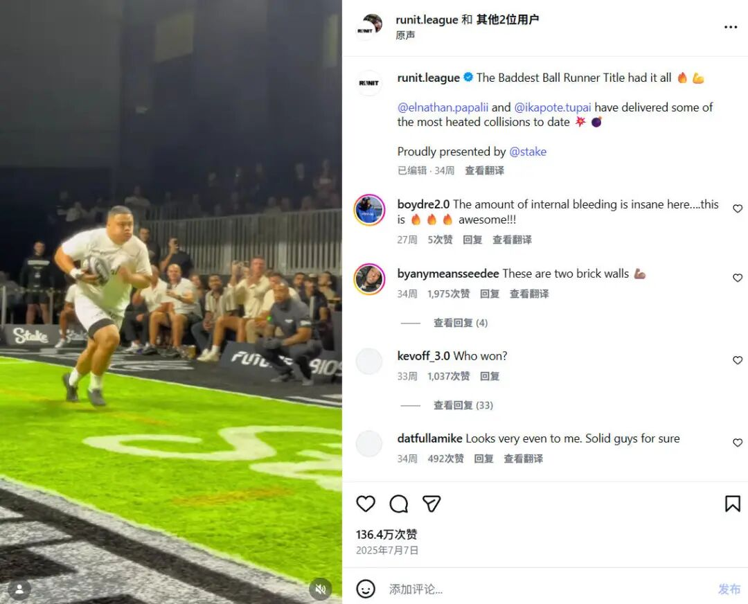 用屁股都能想到,这种比赛不论在海内外,都会引发大量的争议和嘲讽,许多人都询问这种东西有何意义,像是把云贵地区的斗牛放到了人身上。可就算如此,RUNIT的热度也是实打实地在涨,现在它只播出到第二季,但全网观看已经突破一亿了。